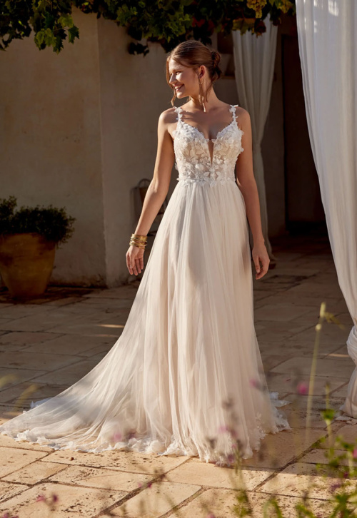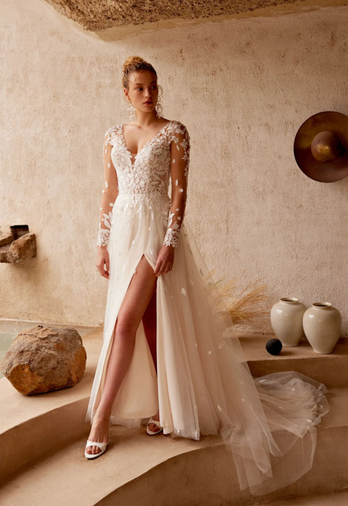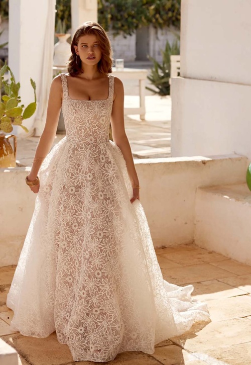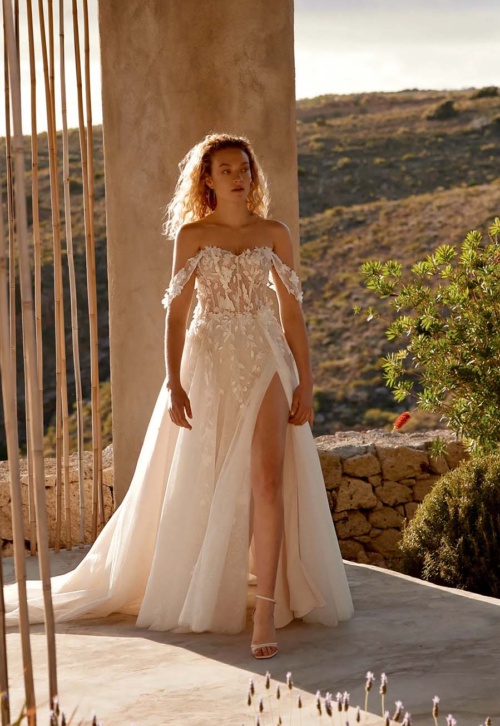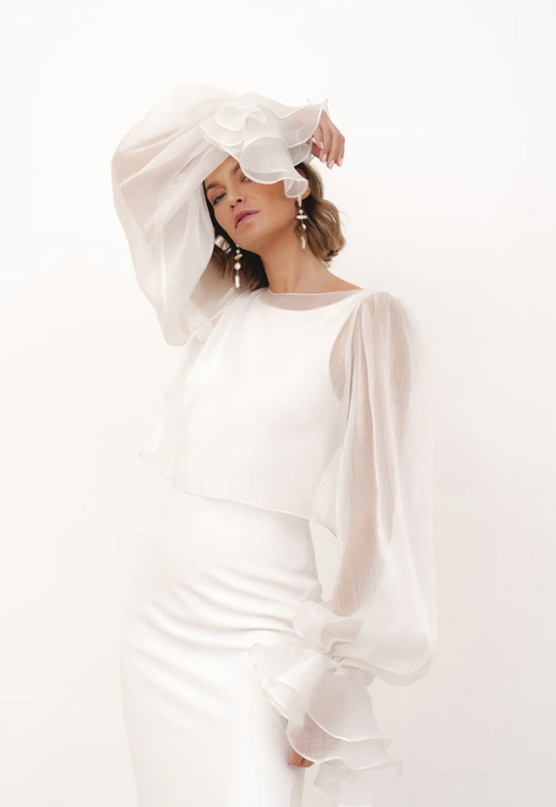Her sleek silhouette sculpts the figure with understated elegance, while the minimalist design lets the details, and the bride, shine.