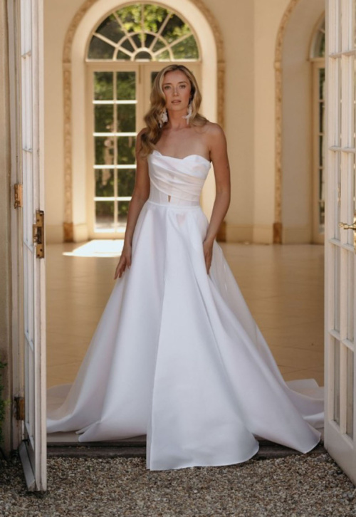 Striking yet feminine, Crawford delivers the perfect balance of modern sophistication and timeless romance - ideal for the bride who wants to feel like a supermodel on her most special day.
