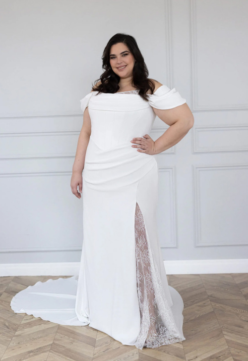 Finished with gentle detailing and a gracefully flowing skirt, this gown is ideal for brides seeking a look that feels whimsical, natural, and effortlessly romantic.