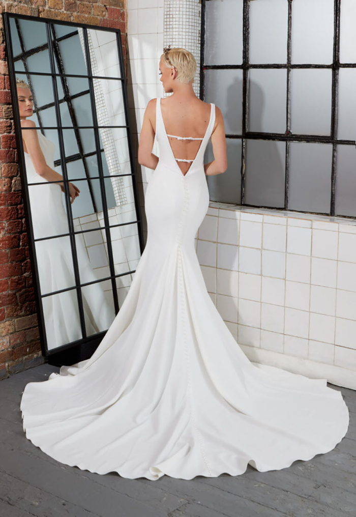 Love a custom vibe? The gown offers versatility with optional coordinating sleeves, so you can go full-on romantic or sleek and minimalist – your aisle, your rules. A modern classic for the bride who wants to turn heads without trying too hard.