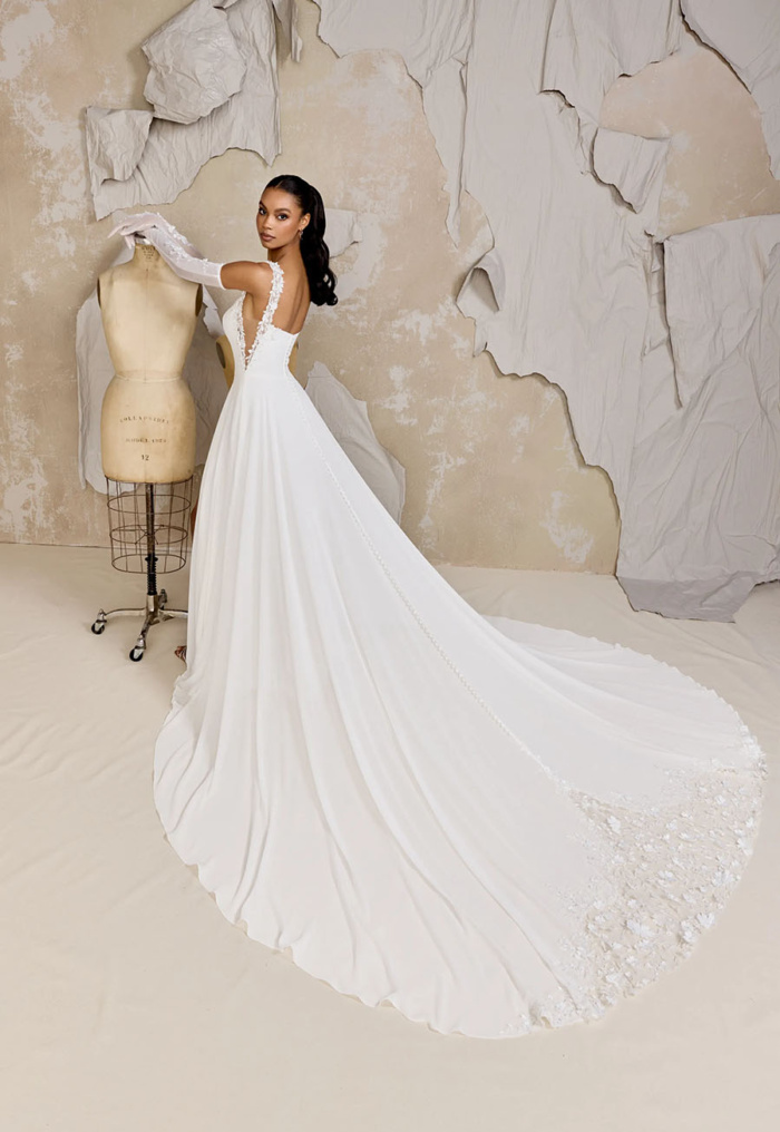 Whether you’re walking down a sunlit aisle or dancing under the stars, the ‘Frost’ gown offers timeless elegance with a contemporary twist.