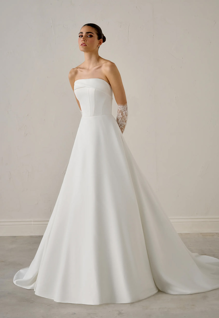 Perfect for brides seeking sleek elegance with a contemporary edge, Empressa is a statement in understated luxury — a ready-to-wear Justin Alexander Signature sample gown designed to leave a lasting impression.