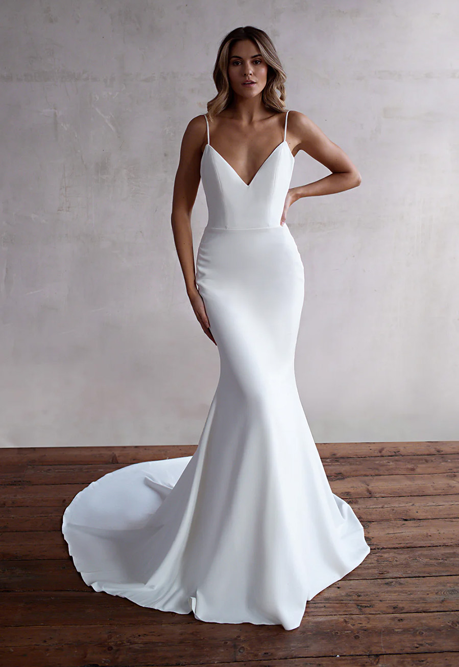The Charlie gown by Love & Liberty is a versatile sample wedding dress designed for brides who want multiple looks in one effortlessly chic design. An evolution of the iconic Lilian, Charlie embodies the brand’s signature modern, clean aesthetic with a refined and flattering cut.
