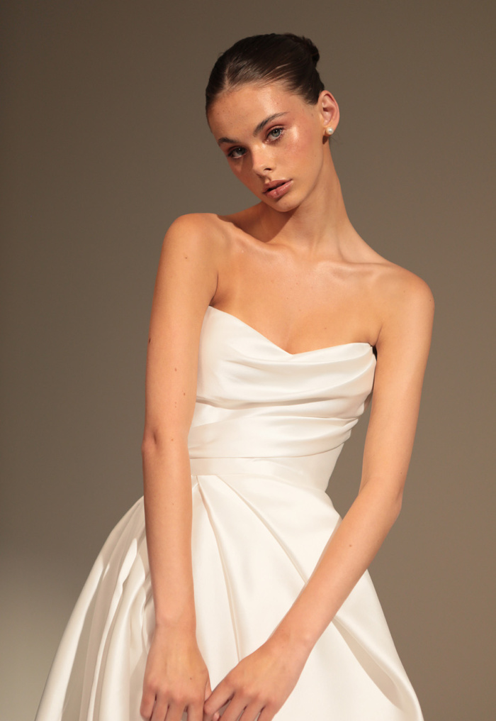 Designed for the fashion-forward bride, the Chantelle gown strikes the perfect balance between structured elegance and soft romance.