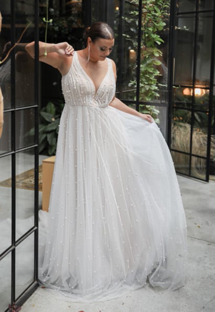 Perfect for brides seeking a look that’s both romantic and fashion-forward, Allium offers effortless elegance and couture-level detail as a sample gown ready to wear.