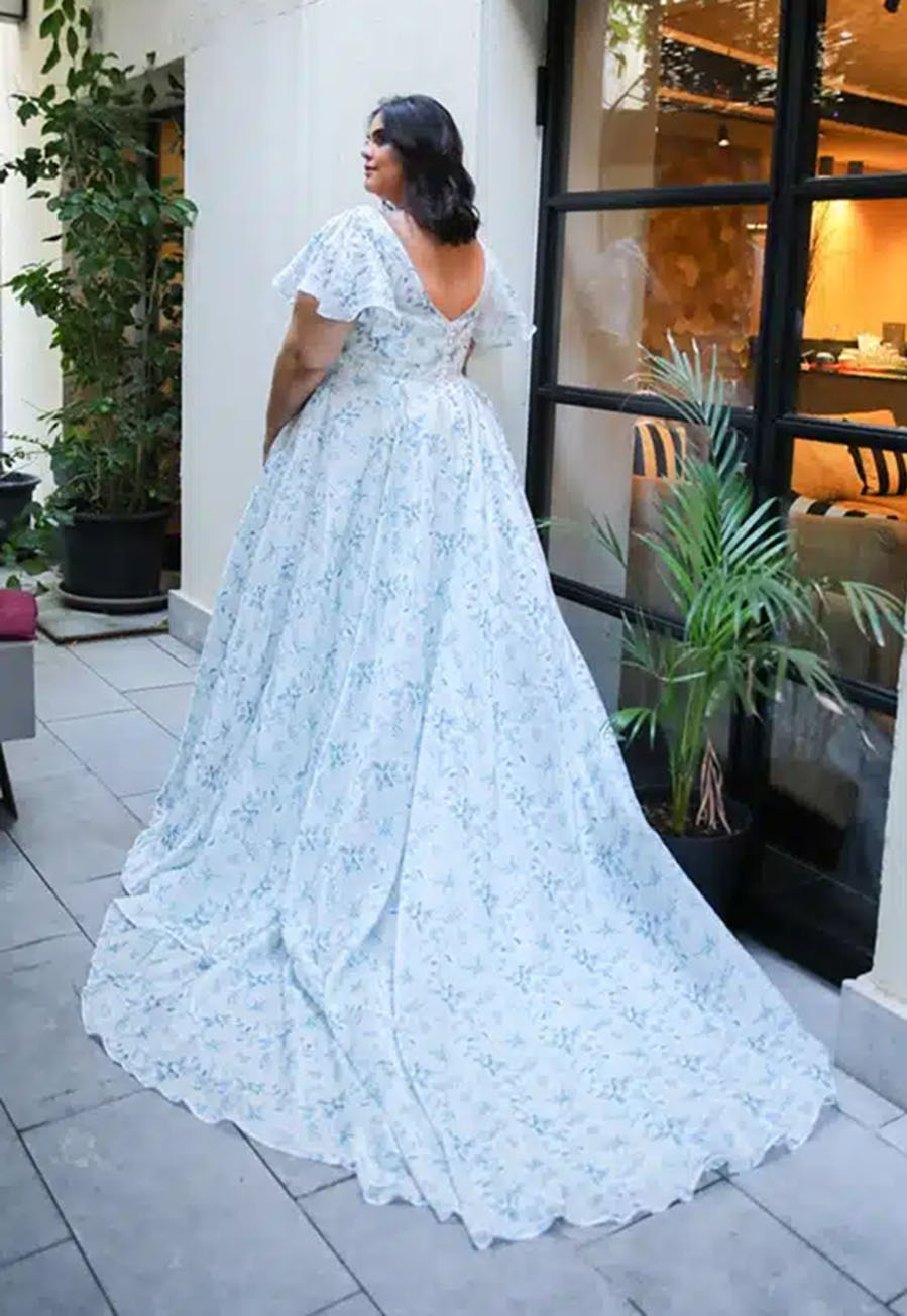 The Elara gown by Studio Levana is a romantic sample dress designed for brides who want elegance with a distinctive twist. Featuring a sculpted corset bodice and an ethereal blue organza skirt, Elara brings soft color and modern artistry to a classic bridal silhouette.