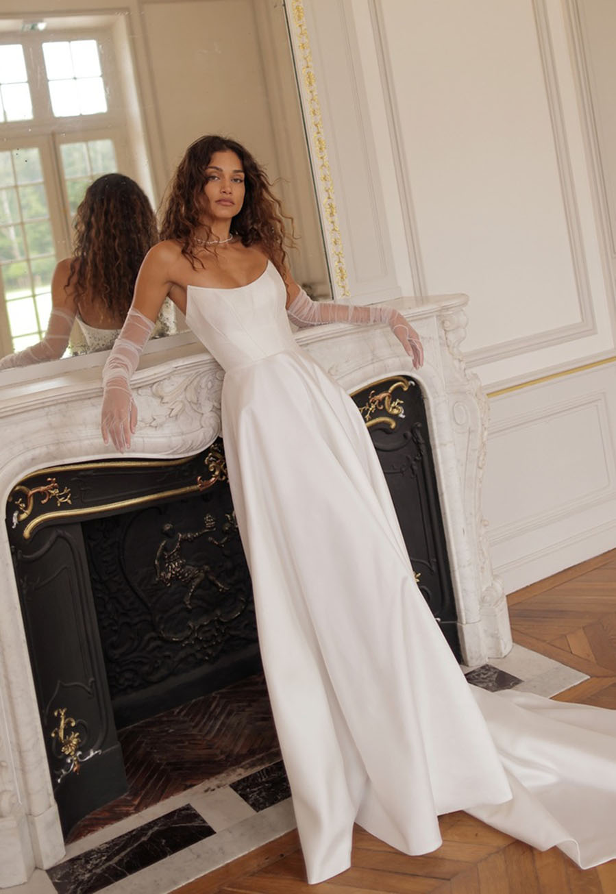 Perfect for brides seeking a contemporary yet timeless look that commands attention.